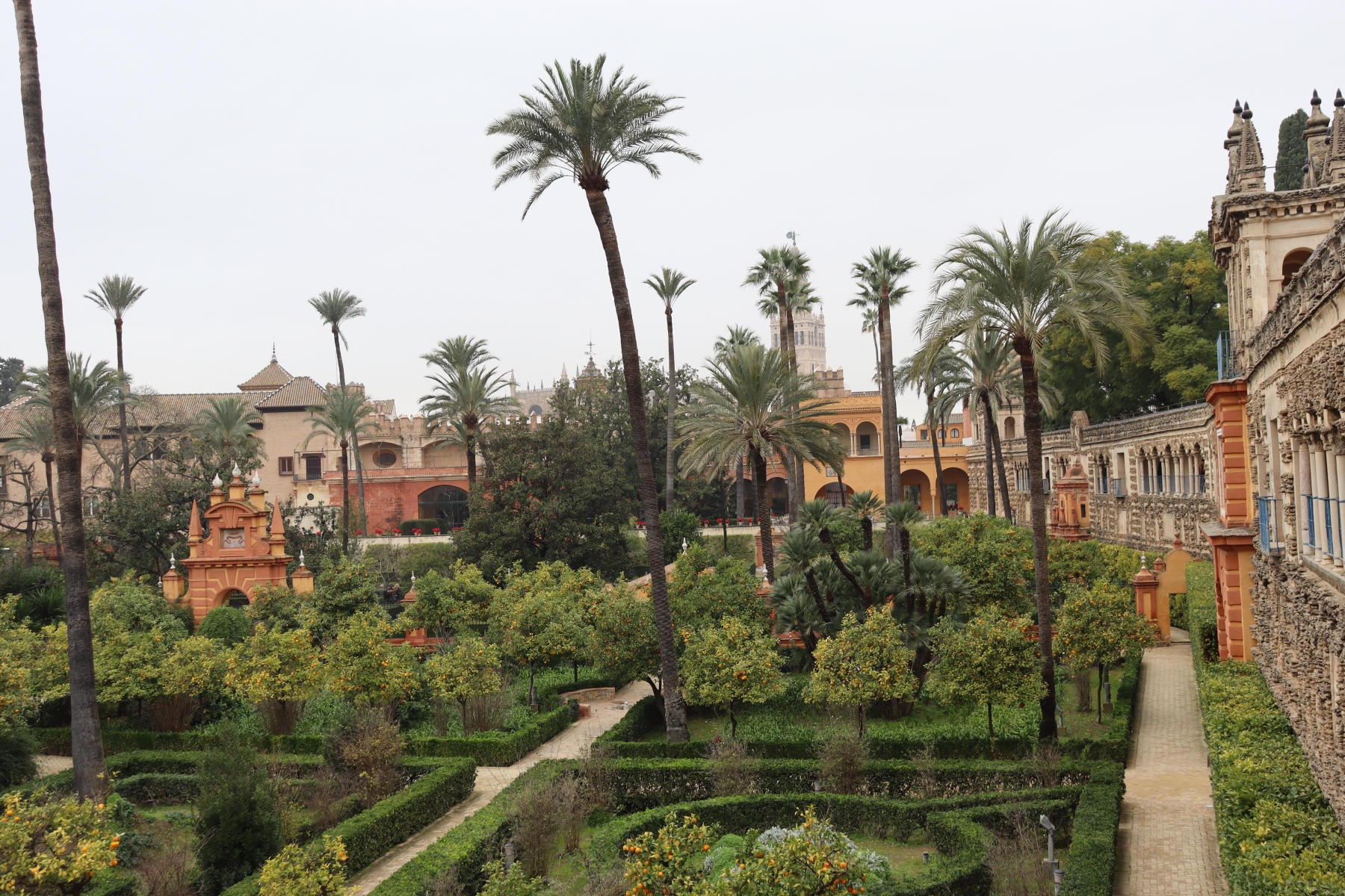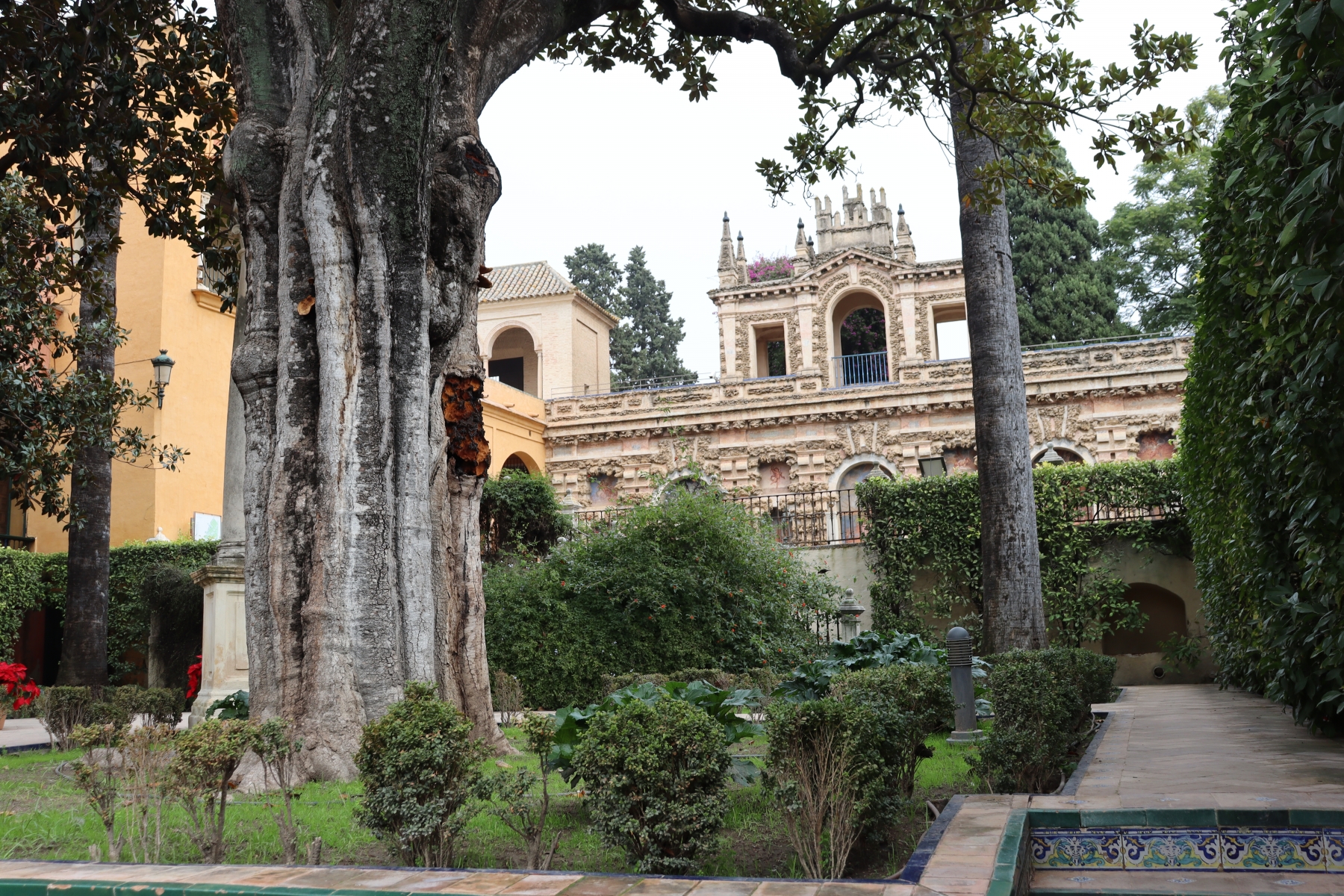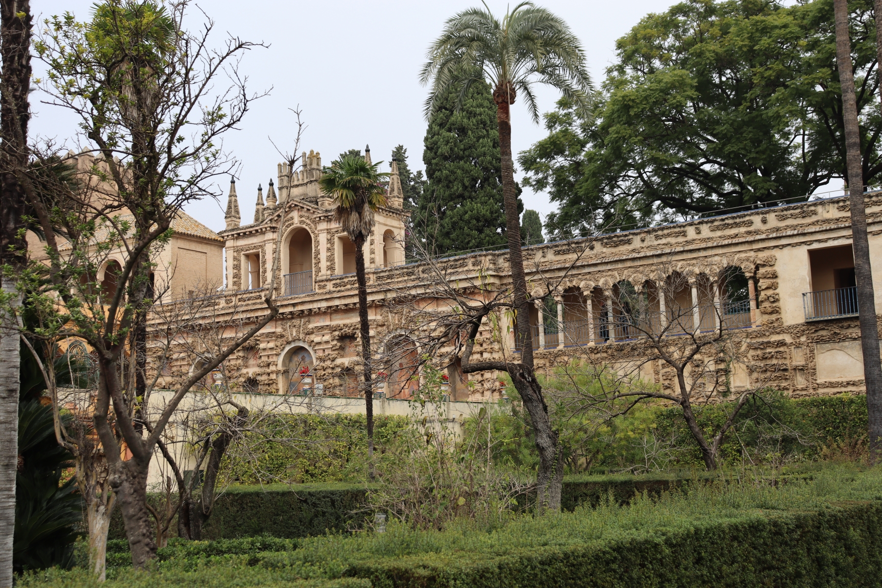 Royal Alcázar of Seville is a Palace built for King Peter of Castile after the Christian conquest of Seville in 1248. Is built in the style of Mudéjar art, which is a combination of Romanesque, Gothic, and Renaissance styles. Has large well kept gardens, photos below.
