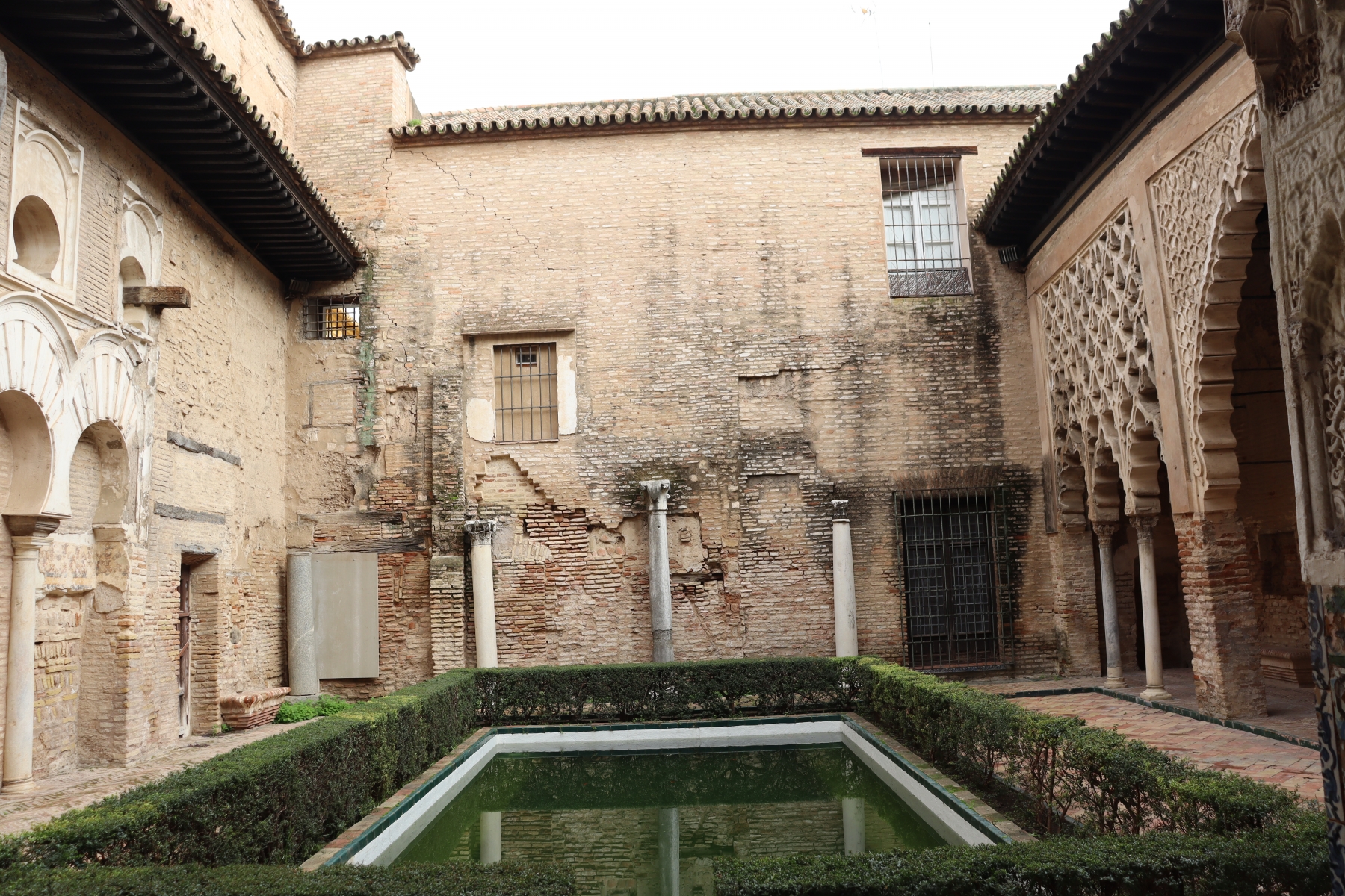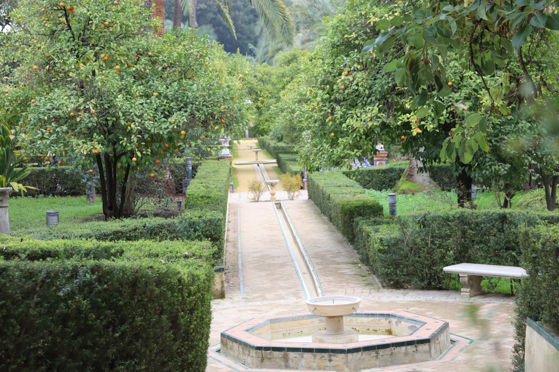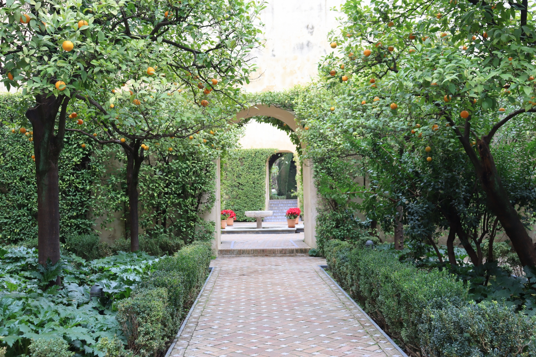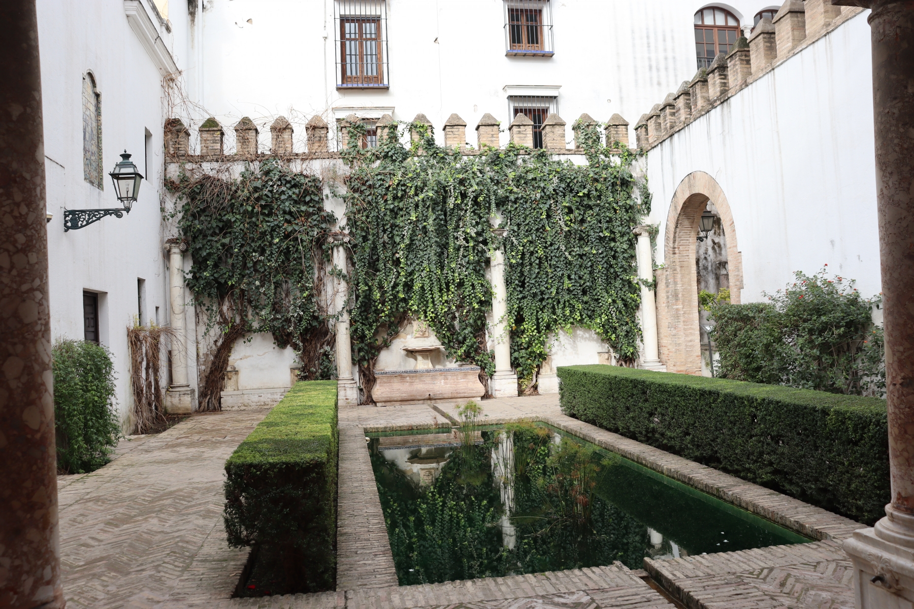 Royal Alcázar of Seville is a Palace built for King Peter of Castile after the Christian conquest of Seville in 1248. Is built in the style of Mudéjar art, which is a combination of Romanesque, Gothic, and Renaissance styles. Has large well kept gardens, photos below.