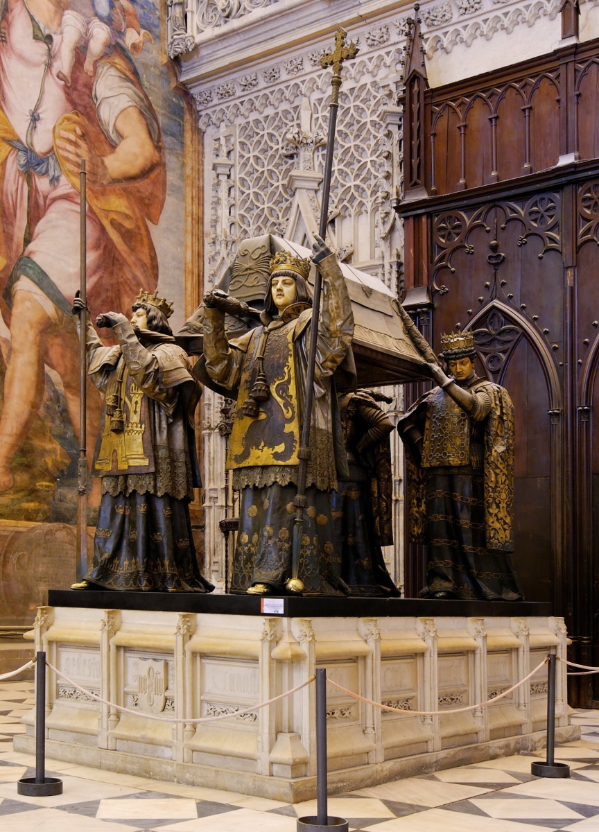 Catedral de Sevilla (Seville Cathedral) is a Cathedral built on the site of a former mosque. Is currently the 4th largest Cathedral in the world. It houses the remains of Cristopher Columbus. Interesting fact his remains were moved 3 times, then when the Spain lost the Cuba America War his remains were moved back to Seville Cathedral. Photos below.